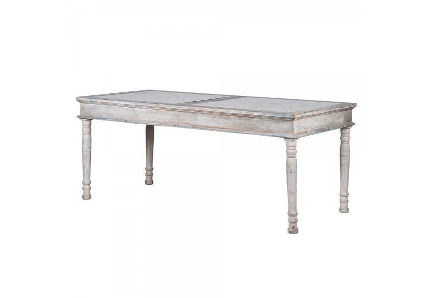 Luxusný provensálsky obdĺžnikový jedálenský stôl Valensole s kazetovou vrchnou doskou a vintage náterom 190 cm