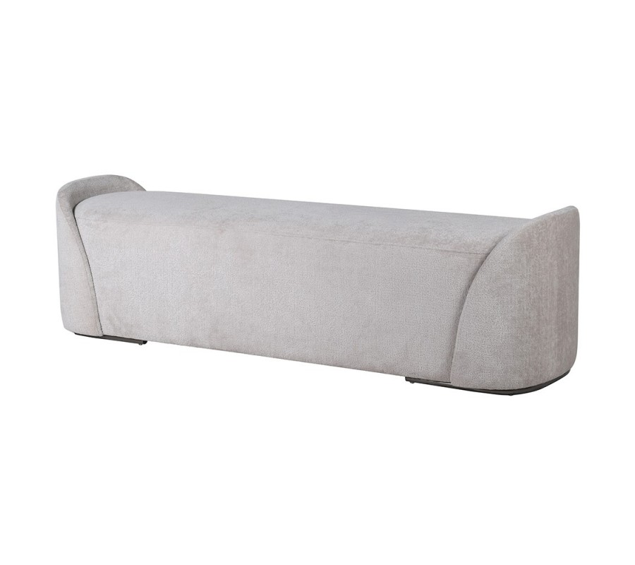 Luxusná moderná lavica Nubilia s čalúnením v oblačnej sivej farbe s dizajnovými bočnými opierkami 163 cm