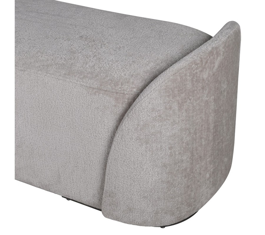 Luxusná čalúnená lavica Nubilia vás na prvý pohľad zaujme svojou modernou siluetou. Dizajnu dominujú dve nízke bočné opierky, ktoré obaľujú hrany lavice a dodávajú jej jemný zaoblený tvar. Pocit ľahkosti a elegancie podporuje aj oblačná sivá farba. Pohodlie vám zaručí mäkké penové čalúnenie a poťahová látka so zamatovým finišom, ktorá je príjemná na dotyk. Na lavicu sa zmestia tri osoby. Na spodnej časti sa nachádzajú krátke hrubé kovové nožičky, ktoré jej dodávajú stabilitu. Je ideálnym doplnkom do spální, kde ju môžete umiestniť na koniec postele, čím vznikne praktický úložný priestor na vankúše či deky. Hodí sa k čalúneným posteliam v odtieňoch sivej či bielej. V našej ponuke tiež nájdete manželskú posteľ Nubilia z rovnakej kolekcie. Lavicu však využijete aj v predsieni, kde vnesie dotyk mäkkosti. Oblačná šedá farba sa hodí do moderných priestorov zariadených v neutrálnych odtieňoch, kde vám pomôže dosiahnuť nadčasový vzhľad. Skvele doplní aj komodu či konzolový stolík s mramorovými prvkami, alebo lesklý chrómový nábytok.