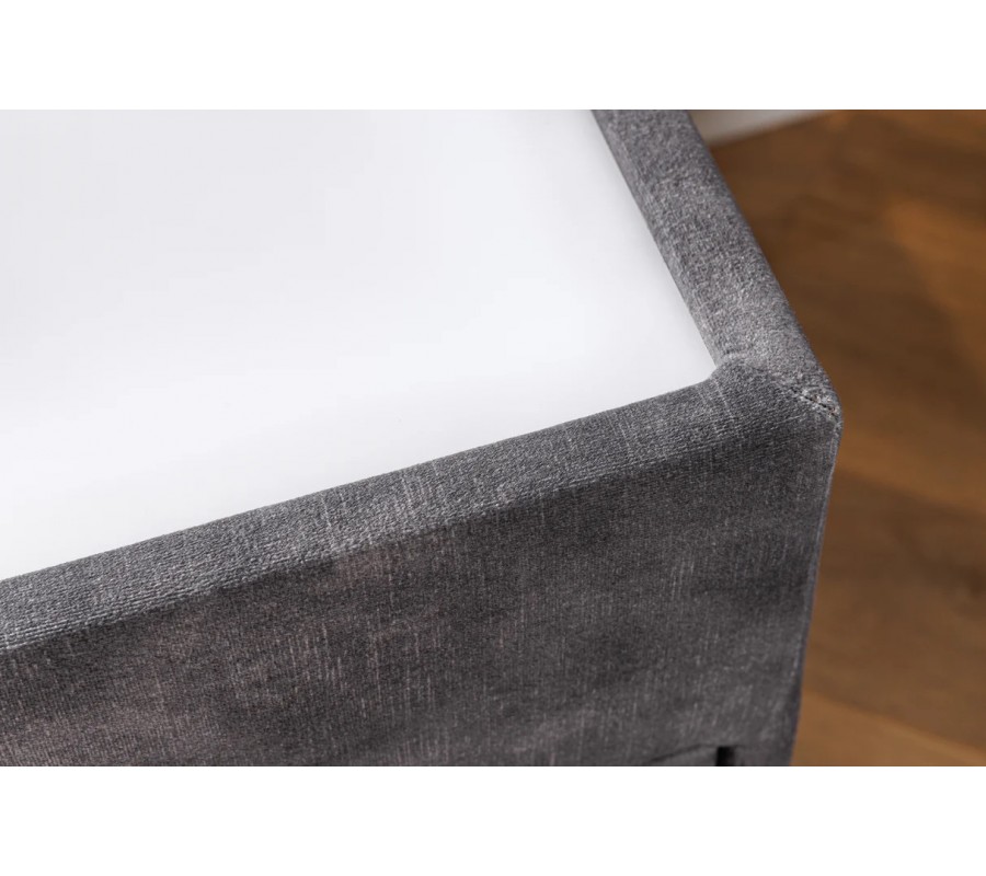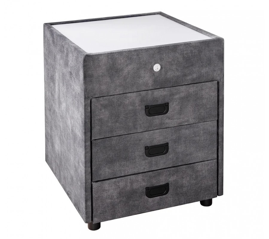 Nočný stolík Aluro prinesie do vašej spálne modernú eleganciu. Poťah v sivej farbe sa ľahko kombinuje s ďalším nábytkom a z praktického hľadiska oceníte aj úložný priestor a podsvietenie vrchnej dosky.