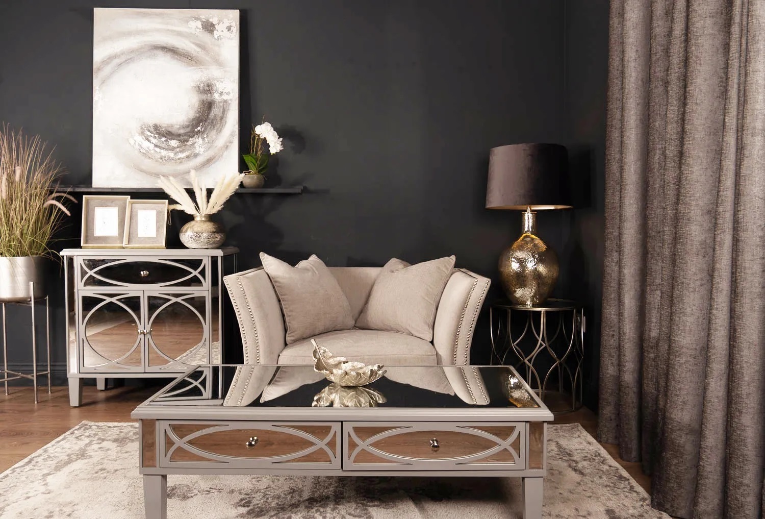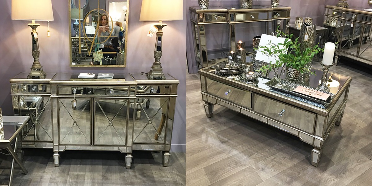 1. Luxusný zrkadlový príborník BELFRY II | 2. Luxusný zrkadlový konferenčný stolík BELFRY
