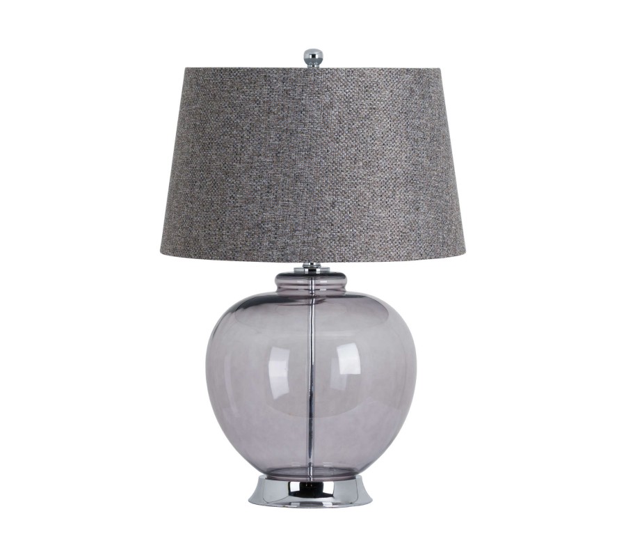 Luxusná stolná lampa z dymového skla s chrómovanou základňou vnesie do interiéru nádych luxusu a elegancie.