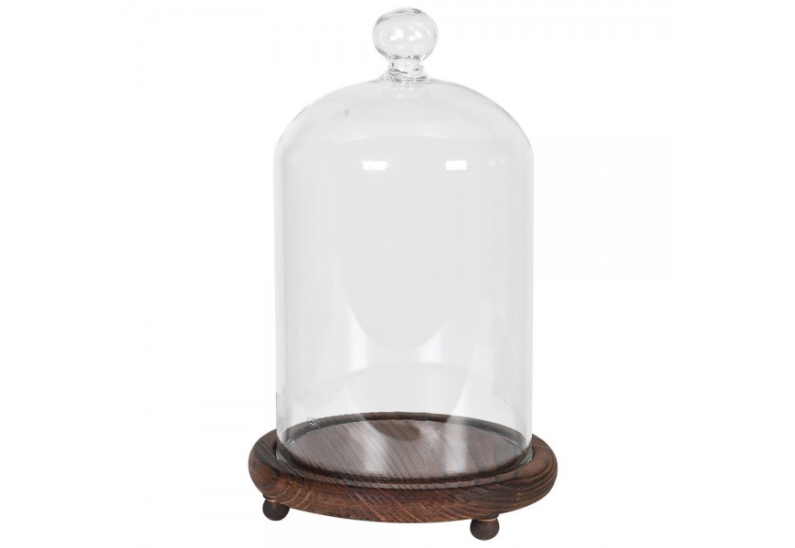 Štýlová dekoračná výstavná kupola Besancon s kupolovým presklenným vrchom a okrúhlou hnedou drevenou podstavou 25 cm