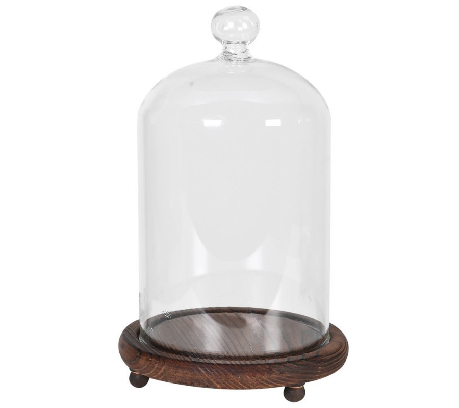 Štýlová dekoračná výstavná kupola Besancon s kupolovým presklenným vrchom a okrúhlou hnedou drevenou podstavou 25 cm