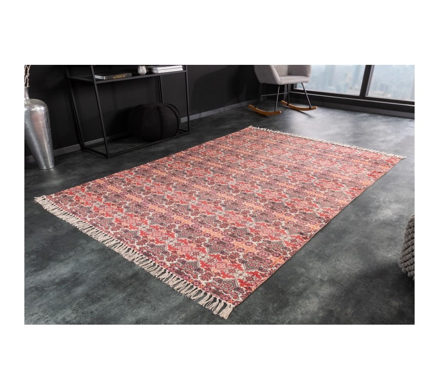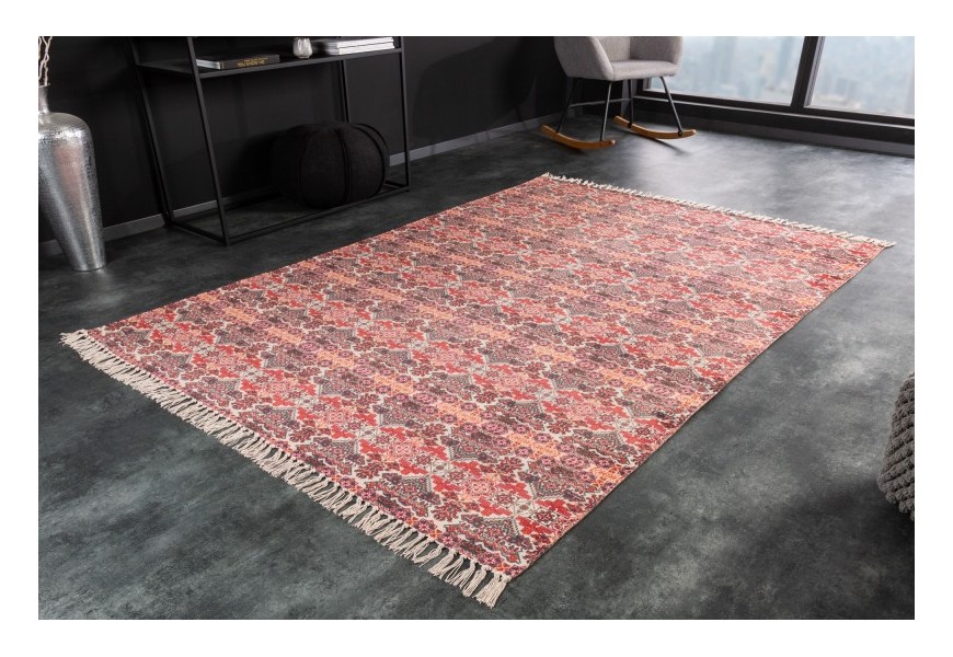 Orientálny bavlnený koberec Besatty v tvare obdĺžnika v červenej farbe so vzorom a strapcami 230cm