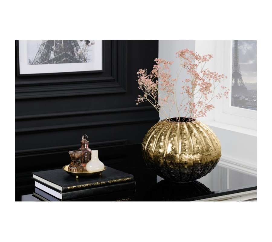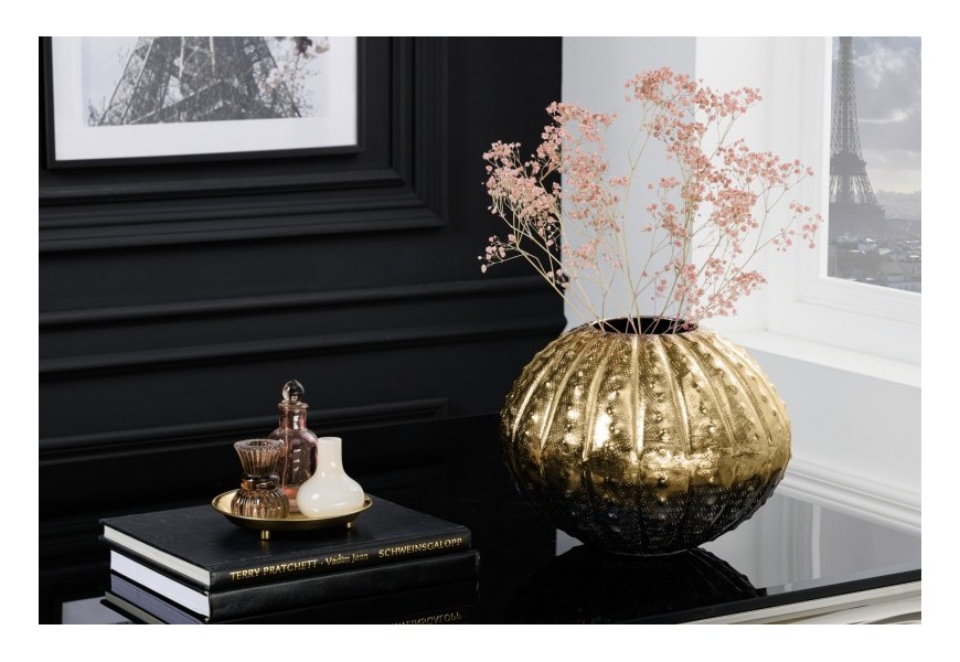 Glamour váza Galactic v kovovom tepanom prevedení v zlatej farbe okrúhleho tvaru 30cm