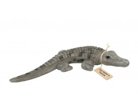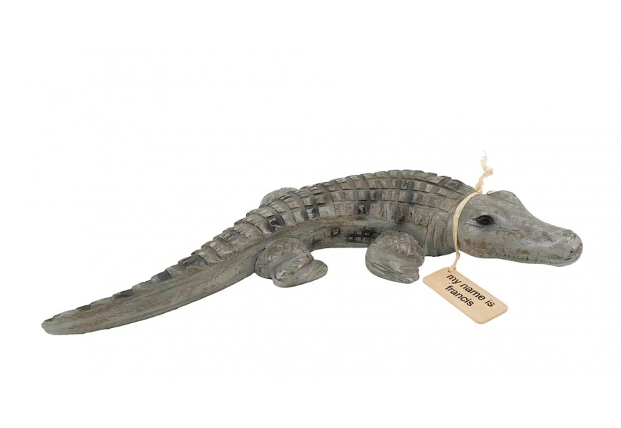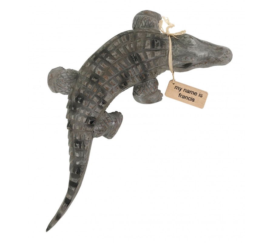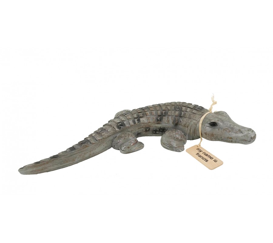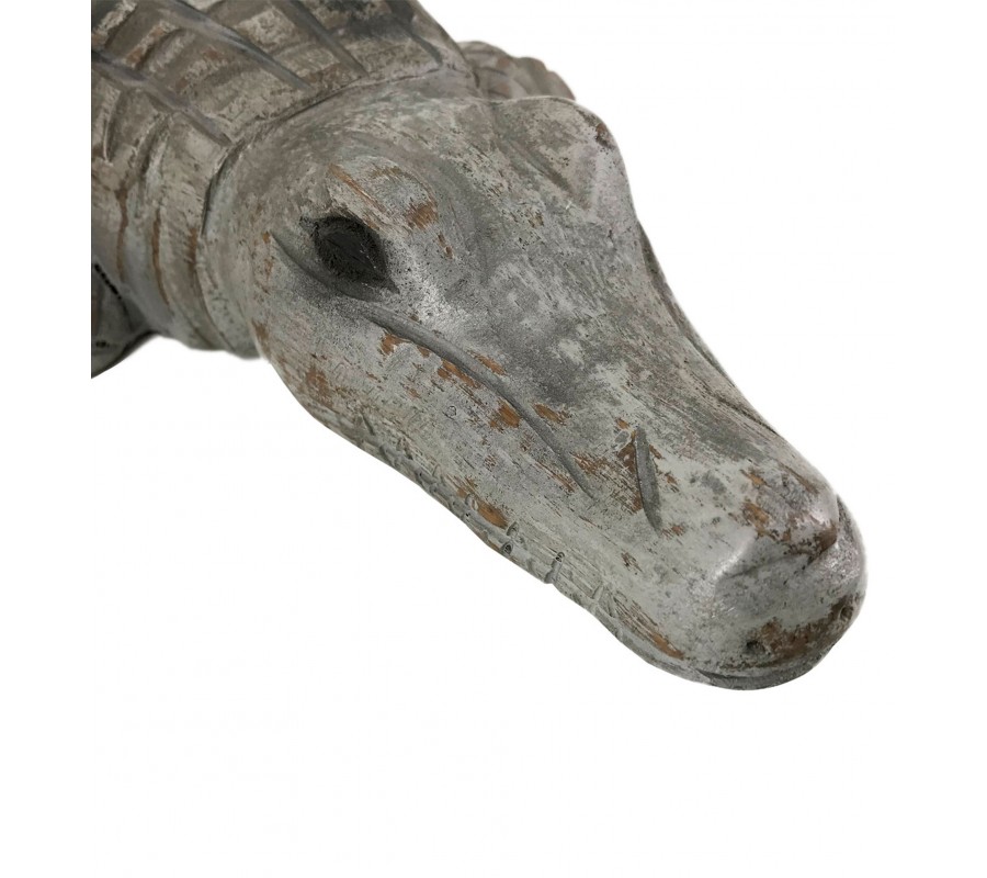 Dekorácia je vyrobená z teakového dreva v tmavej zelenej farbe. Krokodíl má ručne vyrezávané detaily, ktoré predstavuju jeho kožu. Kúsok môžete umiestnť do obývačky medzi police v knižnici alebo na konferenčný či príručný stolík kde upúta pozornosť a doladí tak celkový dojem interiéru. Dekoráciu odporúčame umiesniť do interiérov ladených vo vidieckom štýle, no svoje miesto si nájde aj indutriálnom alebo modernom priestore.