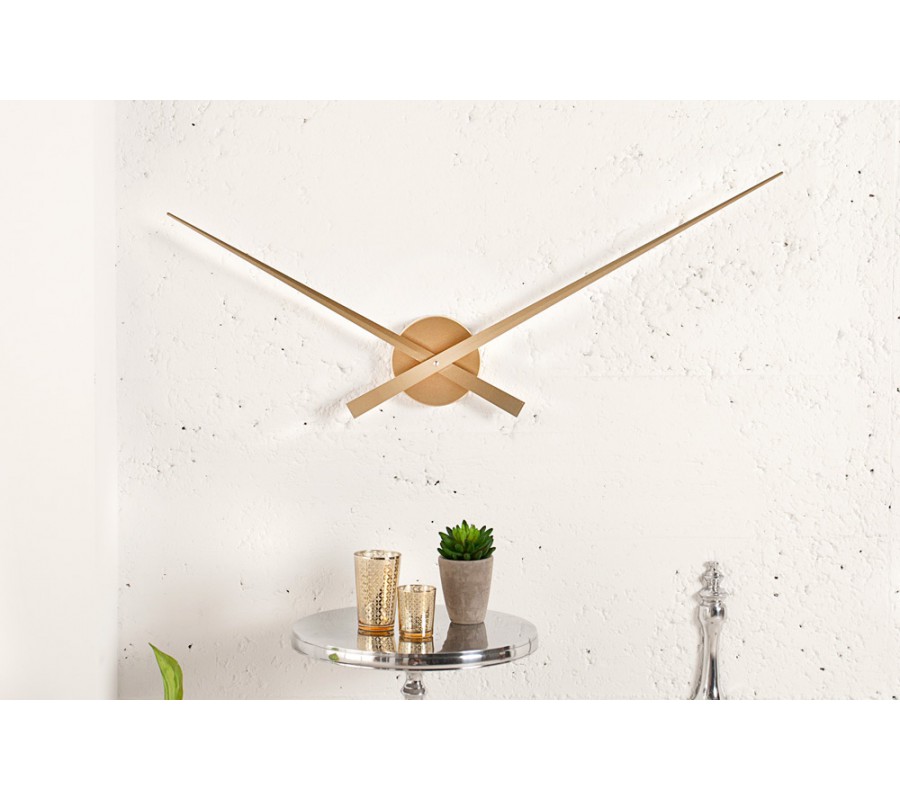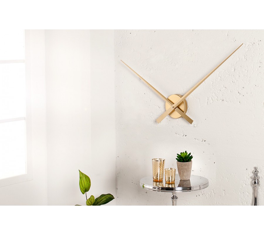 Dizajnové minimalistické nástenné hodiny Little Big Time svojim vzhľadom rozžiaria a vytvoria príjemnú atmosféru v každom interiéry. Rozmery: Celkový Ø: 80cm Farba: zlatá Batéria: 1 x AA