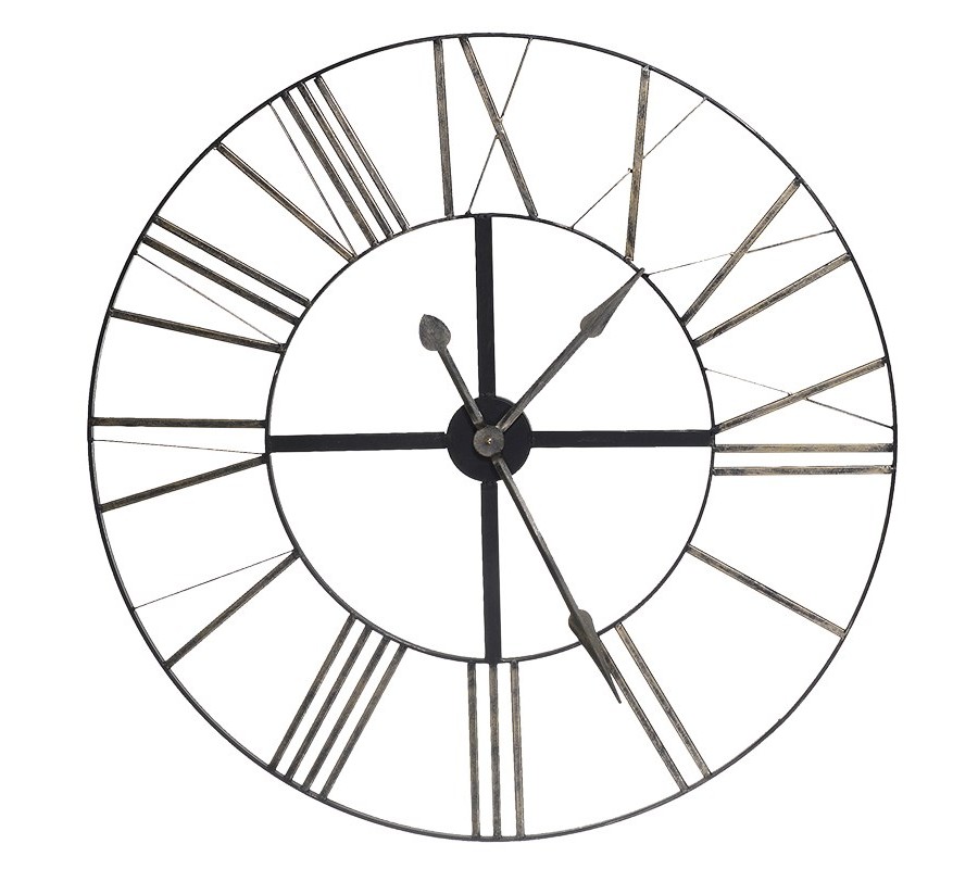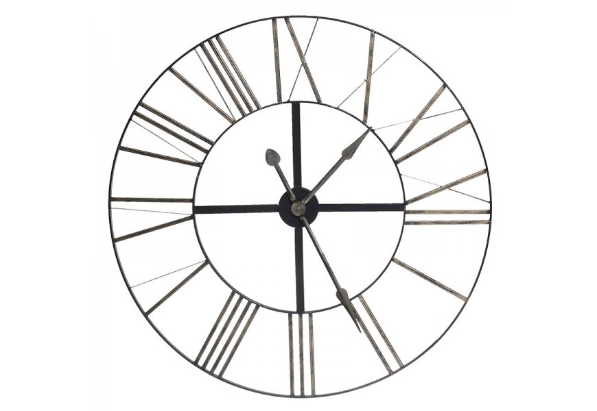 Otvorený rám bez zadnej dosky odhaľuje stenu za nimi, čo z nich robí vizuálne odľahčený prvok. Rímske číslice sú vytvorené z kovových pásov v čiernej farbe s mierne patinovanou povrchovou úpravou, ktorá pôsobí vintage dojmom.
