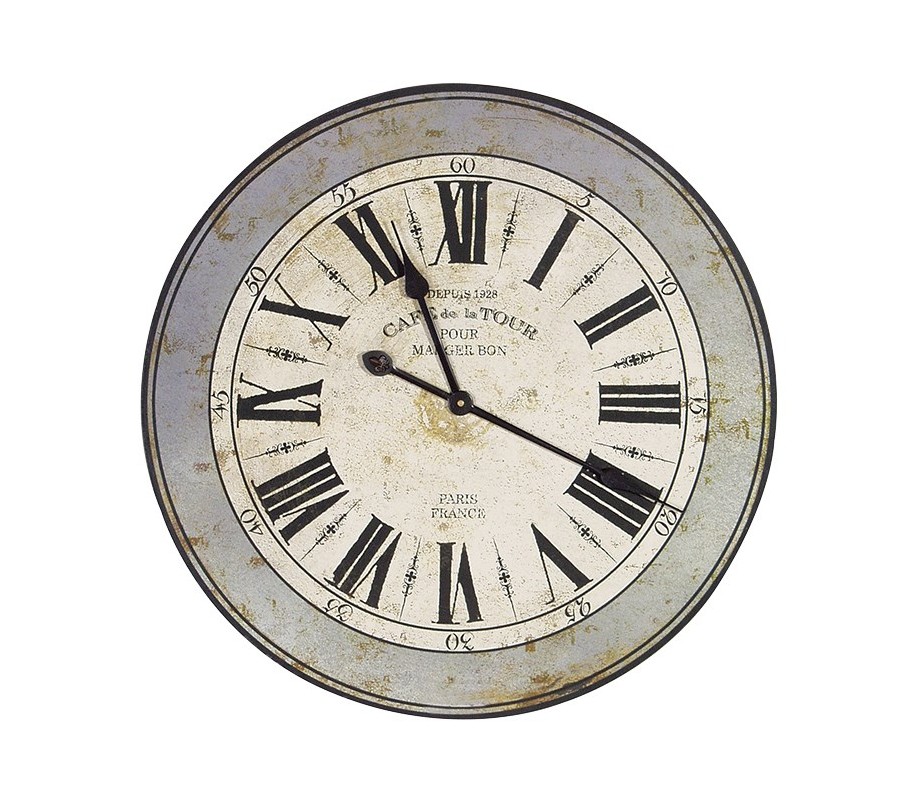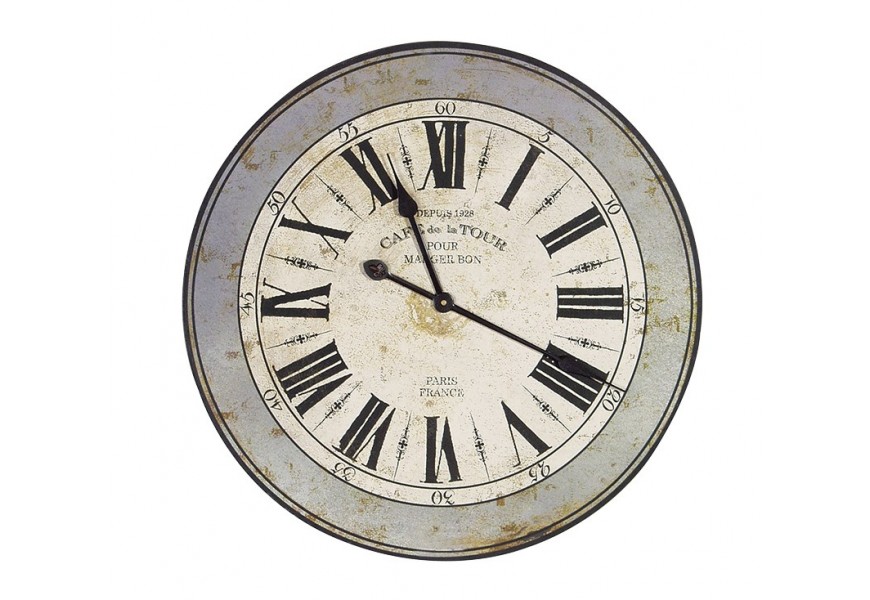 Vintage retro hodiny Paris France s nádherným ciferníkom a rímskymi číslicami vo vintage štýle sú vhodné do provensálsky či vintage ladených priestorov, ktoré pekne doplnia. Hodiny sú v starej bielej farbe v ráme olemované bledomodrým pásom v prevedení vintage.