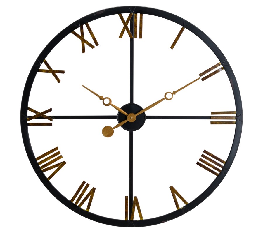 Tieto originálne, kovové hodiny s rímskymi číslicami svojim jedinečným vzhľadom ozvláštnia každý interiér. Kovová konštrukcia v čierno-zlatej farebnej kombinácii na prvý pohľad vzbudzuje industriálny dojem, avšak napriek tomu ide o naozaj nadčasový a univerzálny kúsok.