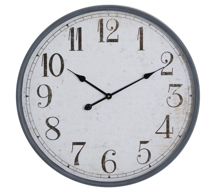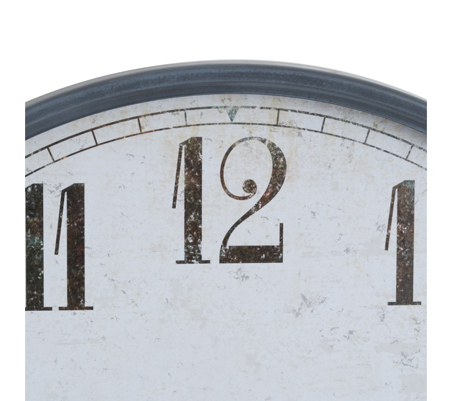 Veľké starožitné nástenné hodiny doplnené patinou pre dosiahnutie autentického vzhľadu. Hodiny budú štýlovým a efektným doplnkom priestorov zariadených v industriálnom, vintage, alebo retro štýle. Materiál: kov