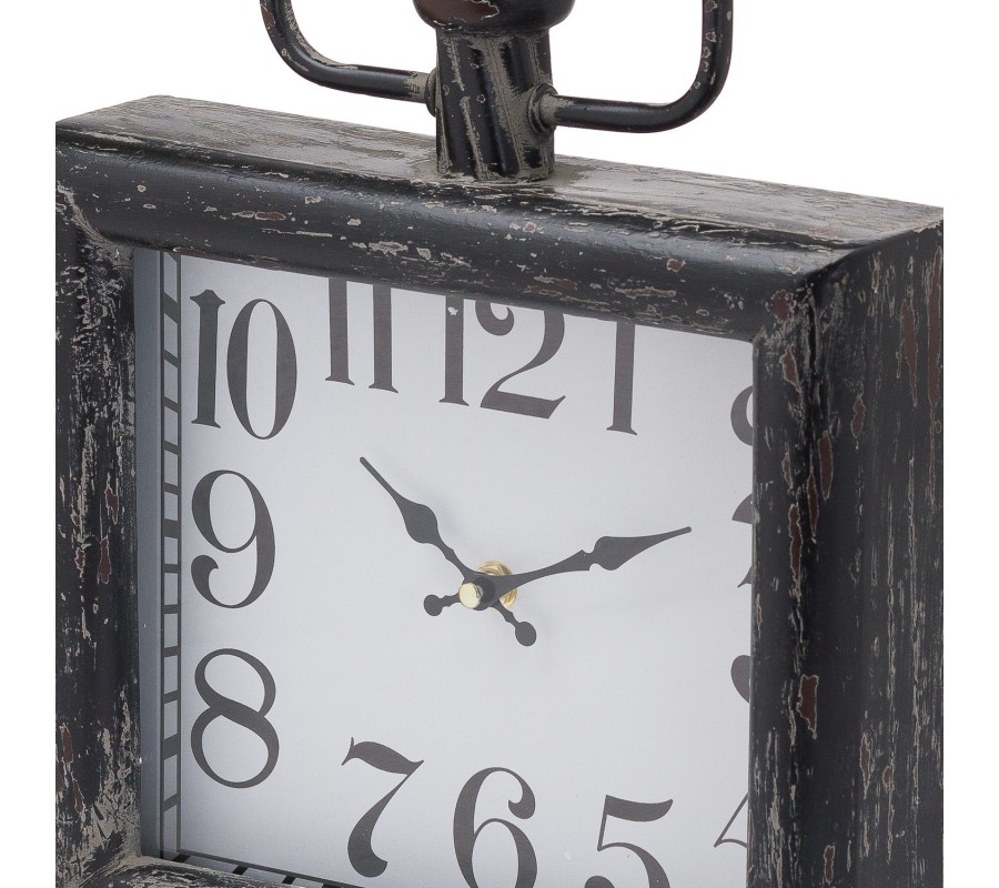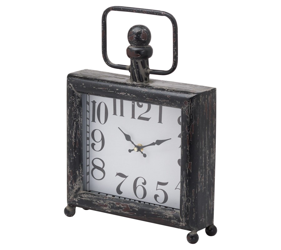 Štýlové hodiny Neiras I sú dizajnovým doplnkom vhodným pre všetkých milovníkov retro či vintage štýlu. Hodiny disponujú rámom v čiernej farbe s patinou pripomínajúcou staré časy. Hodiny sú umiestnené na malých guľatých nožičkách, ktoré zabezpečujú stabilitu a dotvárajú celkový dizajn. Štýlový ciferník a ručičky pripomína vintage štýl a spolu s konštrukciou vytvára príjemný súlad. Hodiny Neiras I možno umiestniť na poličky, komody či nočné stolíky do vašich štýlových retro interiérov.