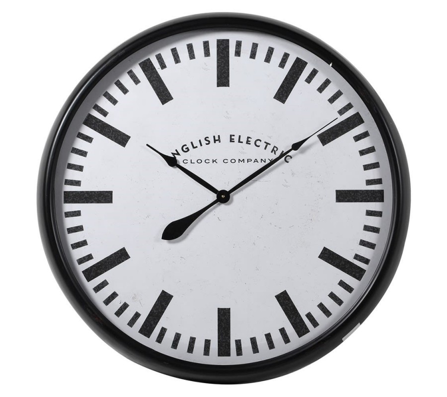 Retro nástenné hodiny Everlest s čiernym hrubým rámom a ciferníkom 80cm