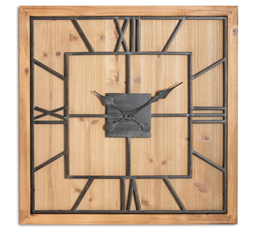 Industriálne dizajnové štvorcové nástenné hodiny Faarzal na drevenej masívnej doske 60cm