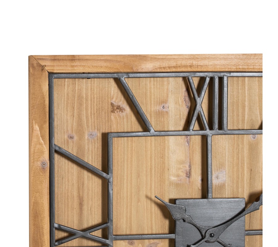 Jedinečné a dizajnové štvorcové nástenné hodiny Faarzal sú nádherným príkladom prepojenia industriálneho a vintage štýlu, viditeľného najmä na čísliciach, ktorých povrchová úprava pripomínajúca patinu je typická pre vintage kúsky. Vkusná podkladová doska v prirodzenej farbe masívneho dreva dokonale necháva vyniknúť čierne kovové rímske číslice. Nadčasové nástenné hodiny odporúčame v rámci hál, obývačiek či recepcií kombinovať so zemitými a teplými farbami v neutrálnych odtieňoch, či kovovými čiernymi a zlatými dekoráciami.