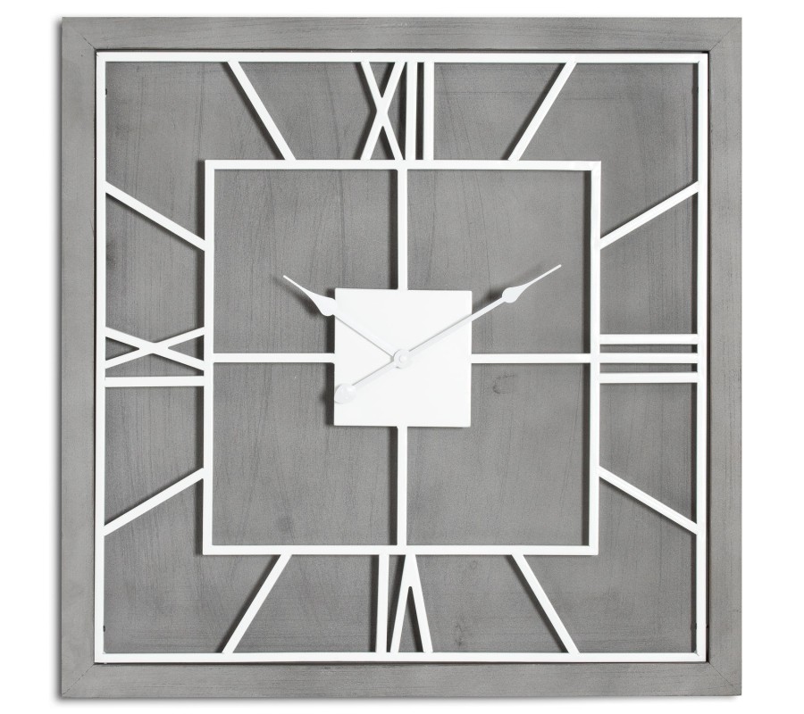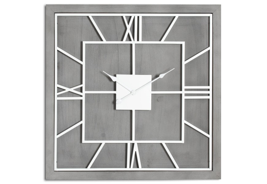 Moderné jedinečné štvorcové nástenné hodiny Stormhill s rímskymi číslicami striebornej farby 60cm