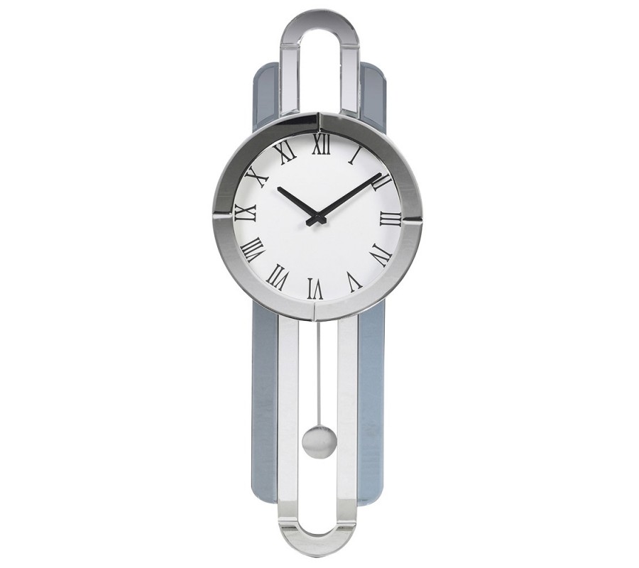 Zrkadlové art deco nástenné hodiny Obara s bielou vnútornou časťou a modrosivými okrajmi a zrkadlovým kyvadlom 80cm