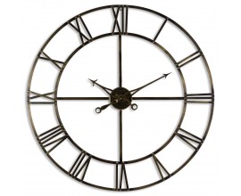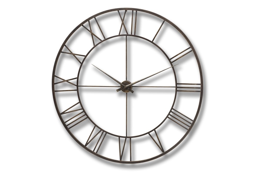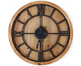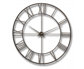 Štýlové industriálne nástenné hodiny Skeleton hnedé