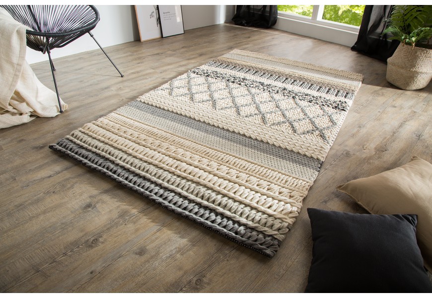 Dizajnový koberec Yarn je dokonalým kúskom do moderne, prírodne, vidiecky či rustiklálne zariadených domácností. Vďaka kombinovanému vzoru a textúre pôsobí atraktívnym dojmom. Do priestoru vnesie domácku a útulnú atmosféru. Koberec Yarn je prvotriednej kvality, vyrobený z najkvalitnejších prírodných materiálov ručnou prácou. So svojiumi rozmerami je vhodný do akejkoľvek obývacej miestnosti, chodby, predsiene či spálne.