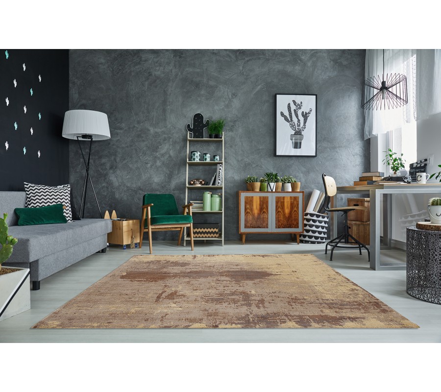 Dizajnový koberec vo farebnom prevedení Sand vyniká svojim nepravidelným, abstraktným vzorovaním v jemných, pieskových odtieňoch hnedej. Vďaka svojmu štýlovému povrchu, ktorý na prvý pohľad zámerne navoudzuje dojem opotrebovanej textílie je tento koberec vhodný do moderných a to najmä industriálne ladených priestorov. Tento unikátny koberec s tak stane neprehliadnuteľným dizajnovým kúskom vašej domácnosti a zároveň zabezpečí komfort vďaka príjemnému materiálu zo 100% bavlny.
