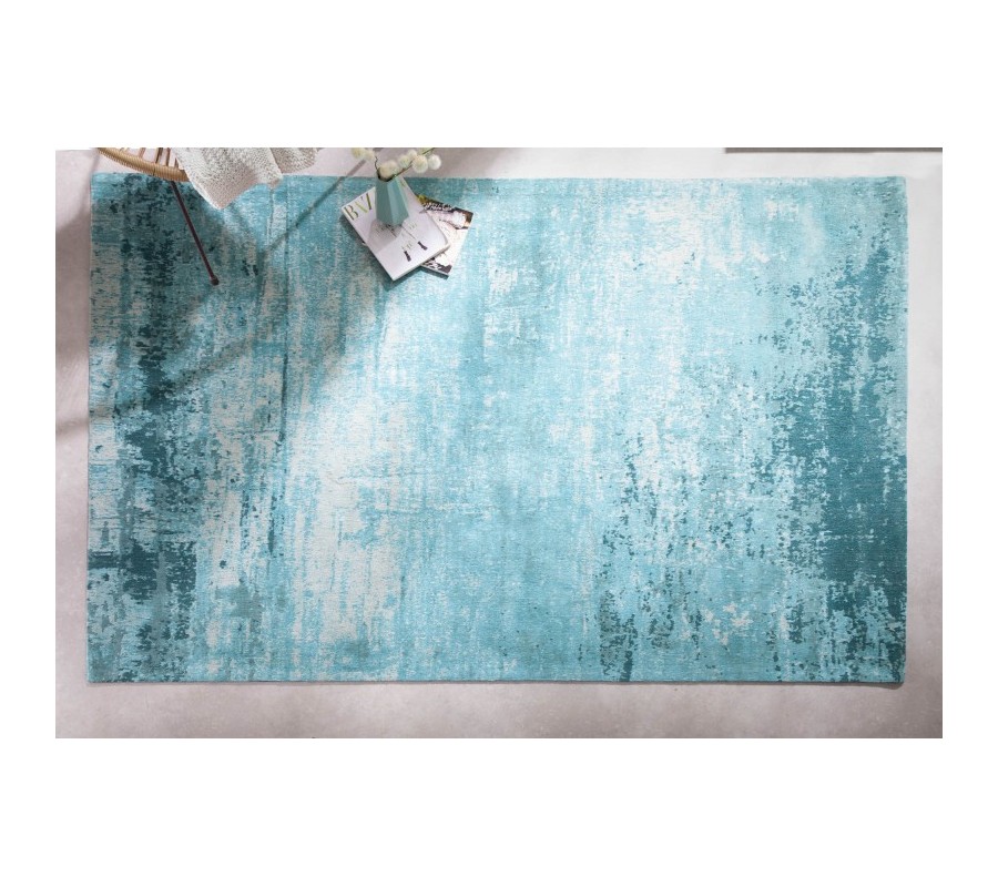 Dizajnový koberec Vernon je vyrobený z kvalitného bavlneného materiálu s nízkym vlasom. Je zaujímavý predovšetkým vďaka svojej tyrkysovo-béžovej farebnosti s vypraným efektom, vďaka čomu je ideálnym adeptom do retro ladených obývačiek, jedální či lobby barov. Pre dokonalý efekt odporúčame koberec Vernon kombinovať s kovovými doplnkami.