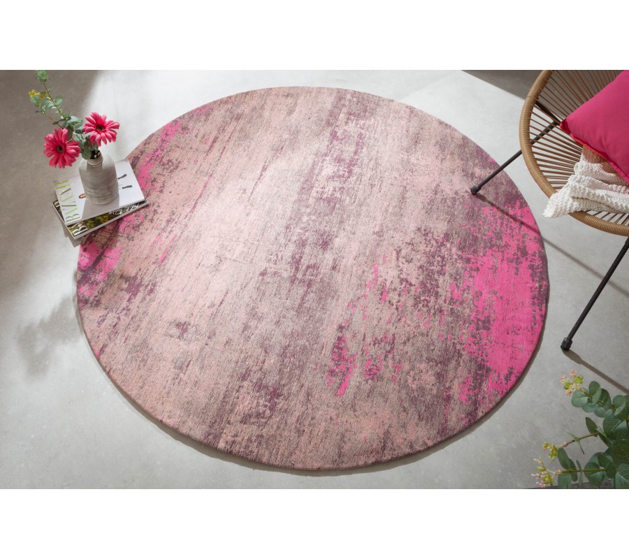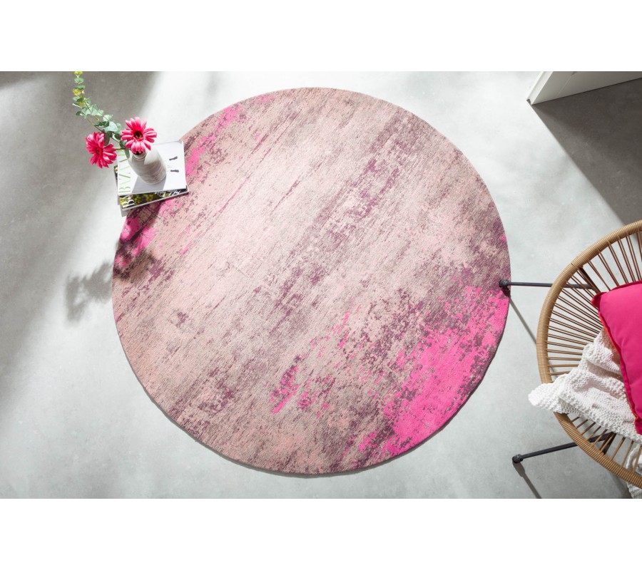 Dizajnový kruhový koberec Adassil z bavlny ružovo-béžovej farby 150cm