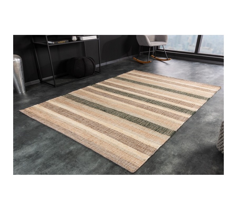 Štýlový moderný obdĺžnikový koberec Persen z konope s pruhovaným dizajnom v naturálnych odtieňoch 230cm