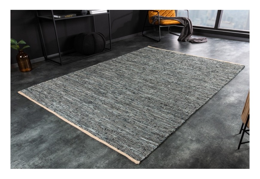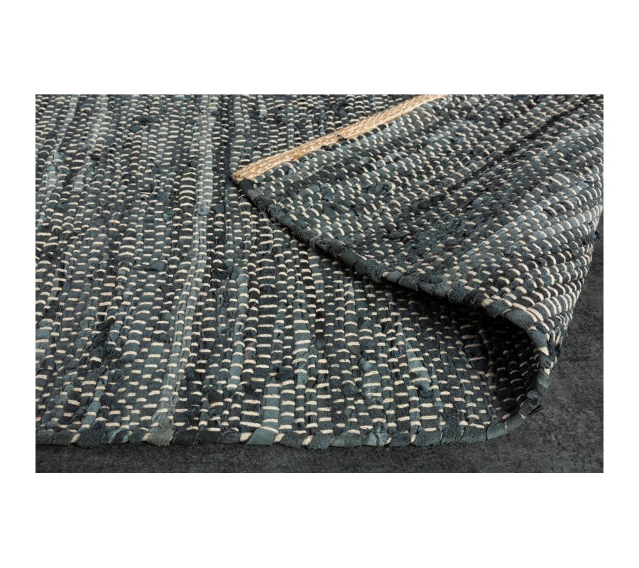 Objavte dokonalý doplnok v modernom štýle pre svoj domov s dizajnovým kobercom Canna. Tento koberec, ktorý kombinuje 85 % pravej kože s 15 % konope, ponúka štýlovú súhru modro-strieborných kožených častí, ktoré vytvárajú jedinečný, moderný a zároveň sofistikovaný dizajn. Prepletanie koberca Canna spočíva z početných kúskov z pravej kože, prepletených vďaka konope v bielej farbe. Zažite maximálne pohodlie pod nohami vďaka mäkkej štruktúre koberca Canna, zatiaľ čo jeho kvalitné materiály zaručujú odolnosť a dlhú životnosť. Koberec Canna je všestranný a ideálny pre akýkoľvek štýl zariadenia, čím dodá Vašej obývačke nádych elegancie a štýlového dizajnu. Pre dizajnovú kombináciu odporúčame kombinovať s čiernym kovovým nábytkom. Dĺžka vlasu koberca je cca 1cm.