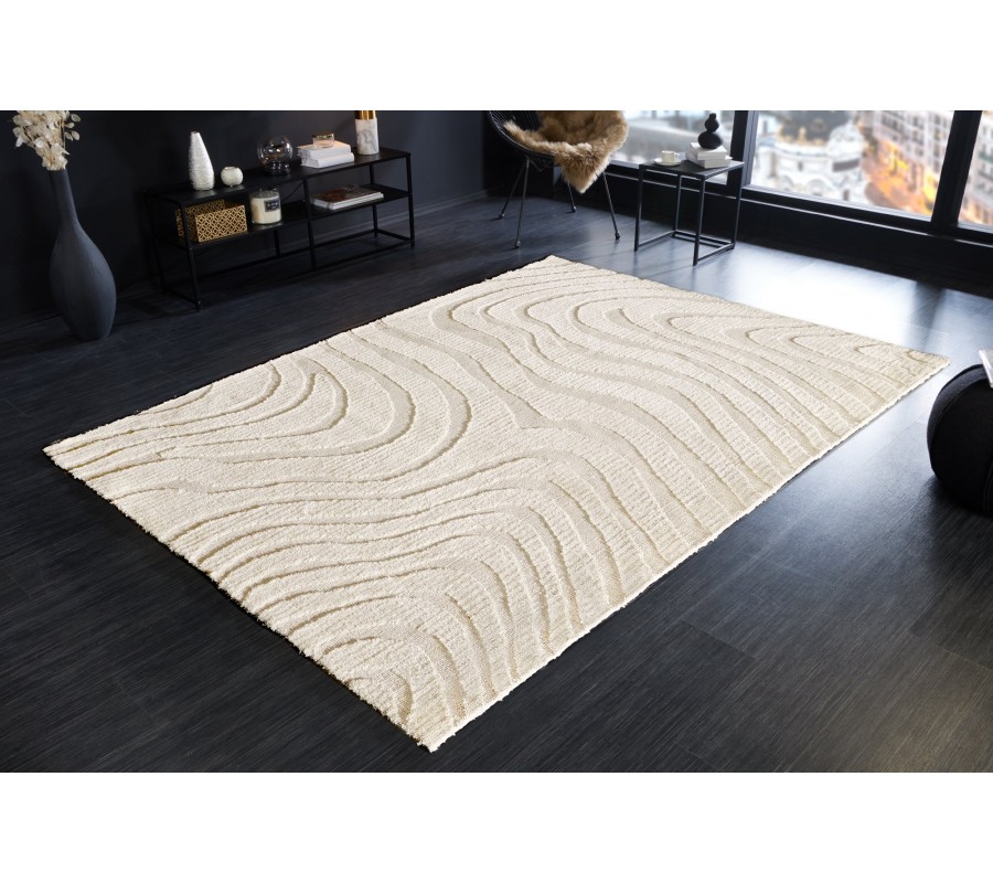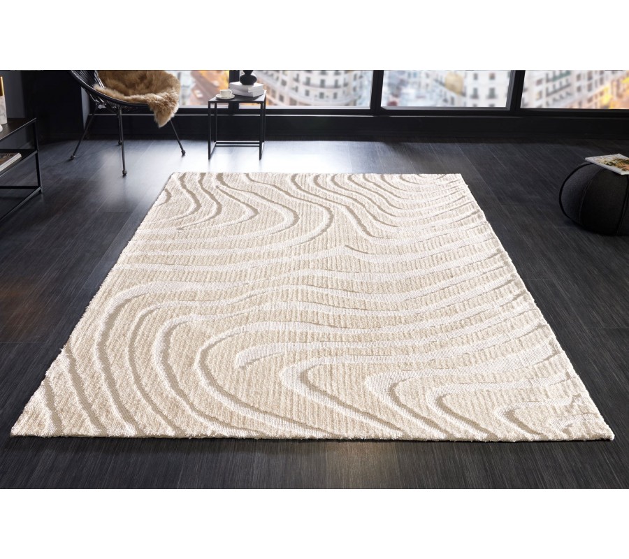 Dizajnový moderný obdĺžnikový koberec Flow s abstraktným vzorom v krémovo béžovej farbe 240 cm