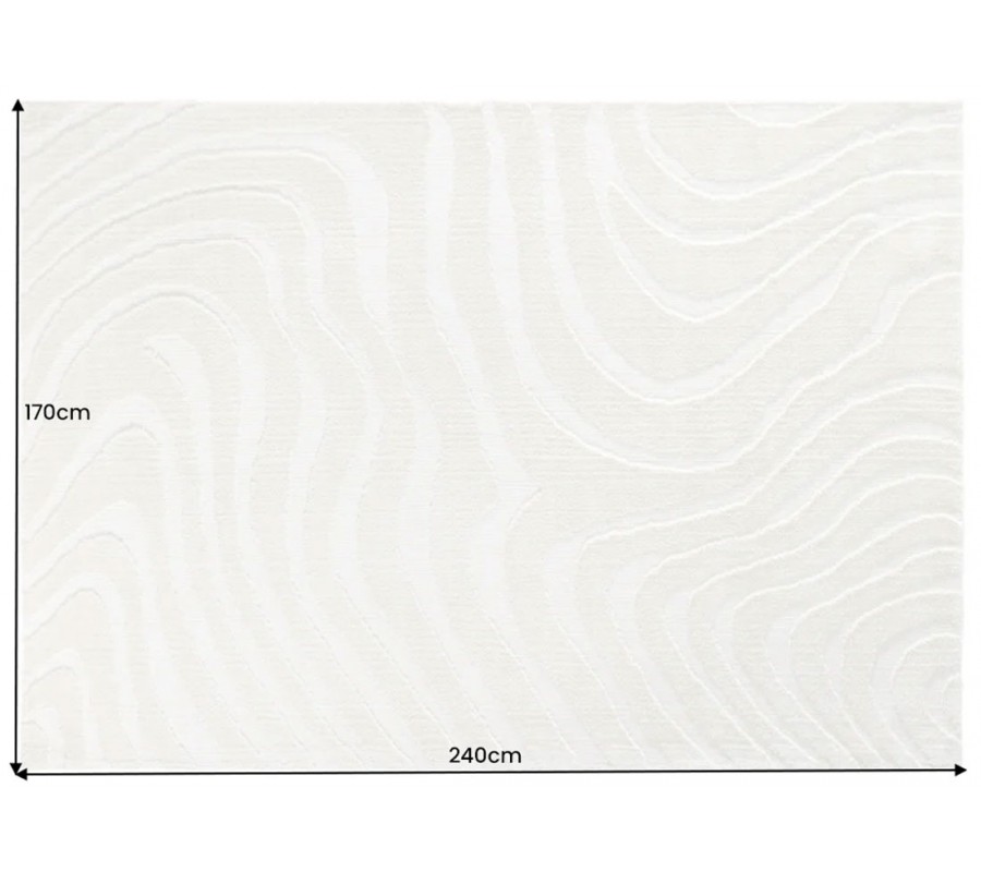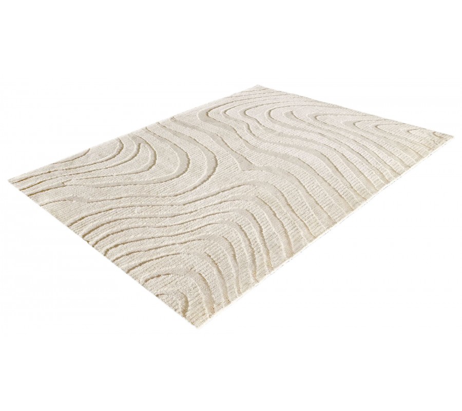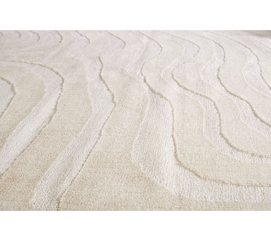 Na povrchu koberca sa nachádza plastický vzor s jemnými organickými líniami, ktoré pripomínajú piesočné duny alebo vlny na vode. Tento trojrozmerný efekt dodáva kobercu zaujímavý a sofistikovaný vzhľad.