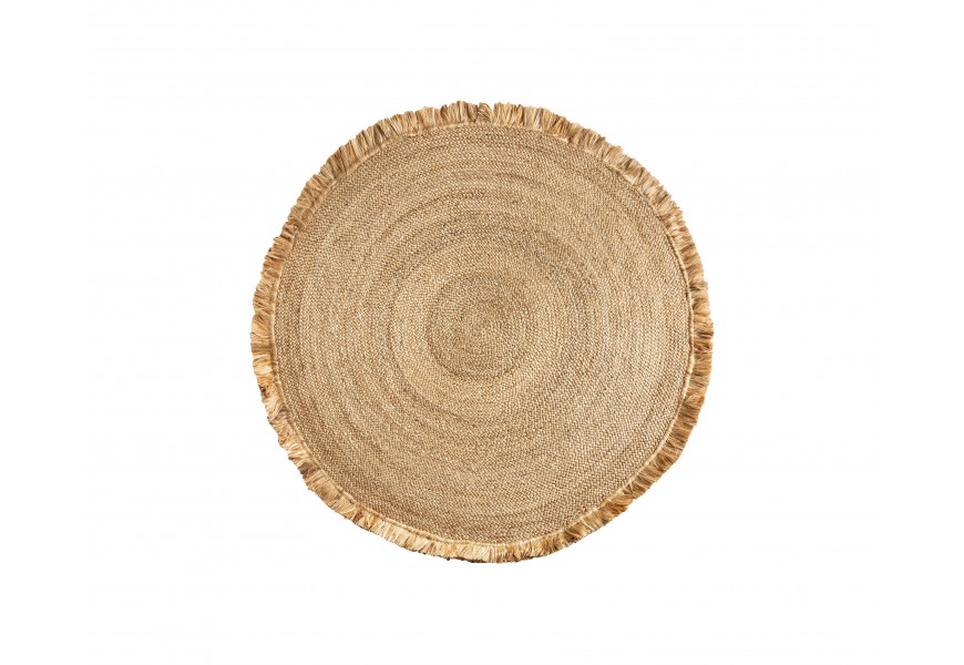 Luxusný koloniálny okrúhly hnedý pletený koberec Zaria z juty so strapcami 260 cm