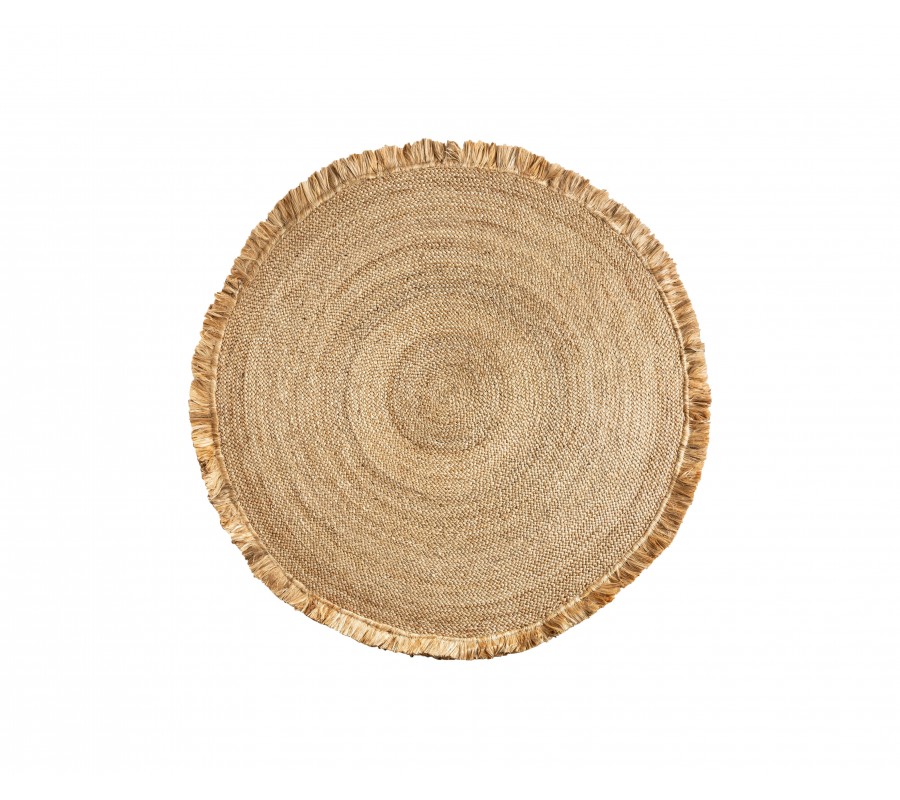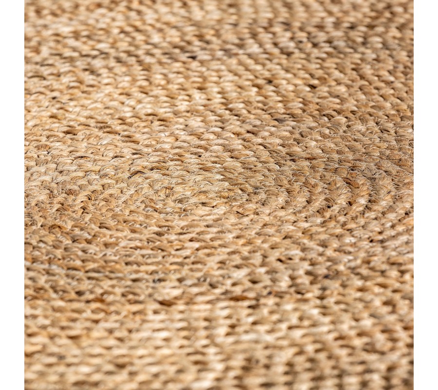 Luxusný koloniálny koberec Zaria je štýlový a funkčný doplnok v okrúhlom tvare, ktorý okamžite zaujme svojím prírodným charakterom a štruktúrou. Vyrobený je z pletenej juty, udržateľného a odolného prírodného materiálu, ktorý sa vyznačuje pevnosťou a jemným rustikálnym vzhľadom. Jeho hnedá farba s jemnými odtieňmi vlákien vytvára pocit tepla a pohody, zatiaľ čo dekoratívne strapce po obvode mu dodávajú vzdušnosť a etnický nádych.