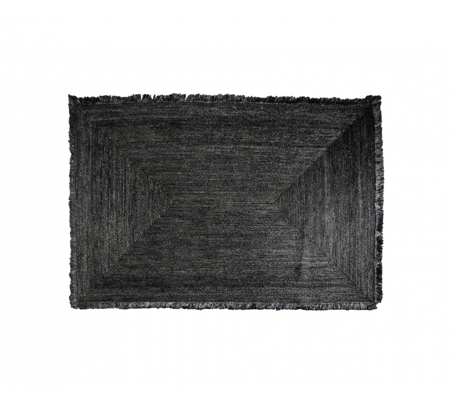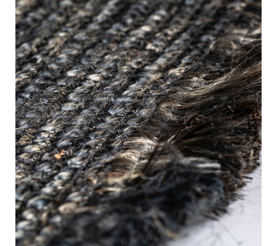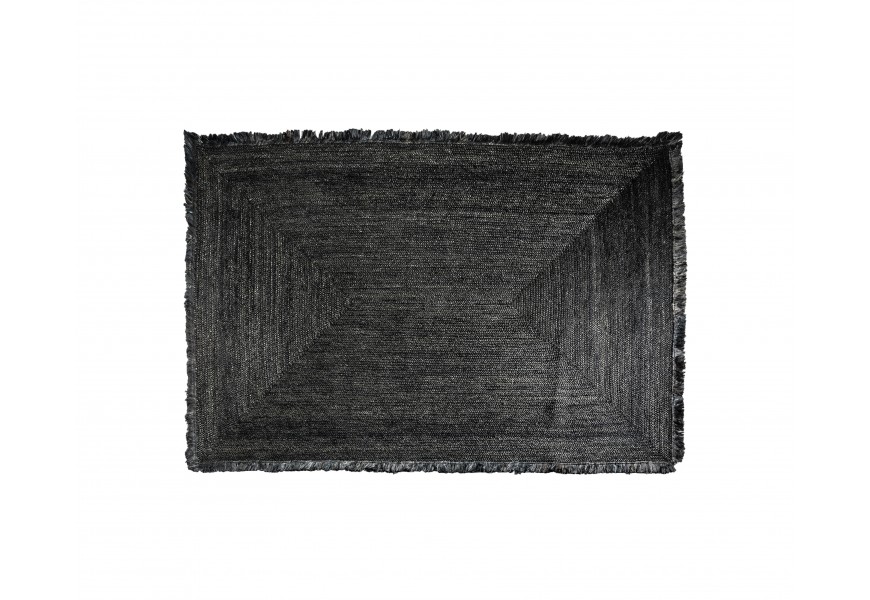 Luxusný koloniálny obdĺžnikový vypletaný čierny koberec Zaria z juty so strapcami 315 cm