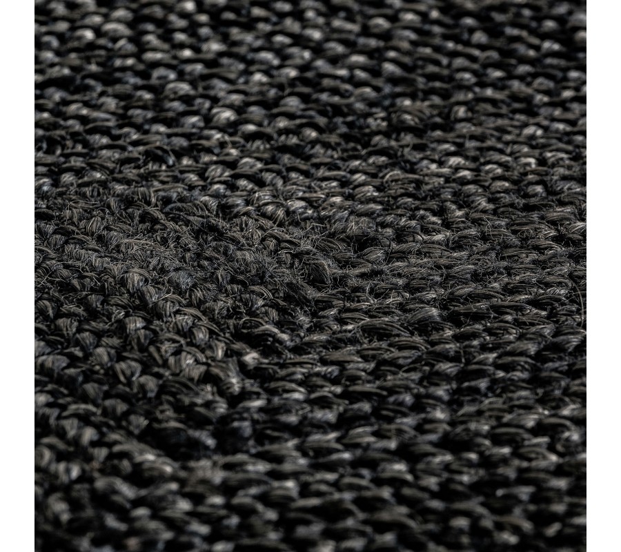 Luxusný koloniálny koberec Zaria v obdĺžnikovom tvare zaujme na prvý pohľad intenzívnou čiernou farbou, ktorá mu dodáva eleganciu a výrazný charakter. Je vyrobený z pletenej juty, vďaka čomu má nielen ekologický pôvod, ale aj bohatú textúru a remeselne pôsobiaci vzhľad. Výrazná štruktúra výpletu vytvára jemné geometrické línie a nepravidelný efekt, ktorý zvyšuje jeho vizuálnu zaujímavosť. Koberec je lemovaný strapcami, ktoré mu dodávajú ľahký etno alebo boho nádych.