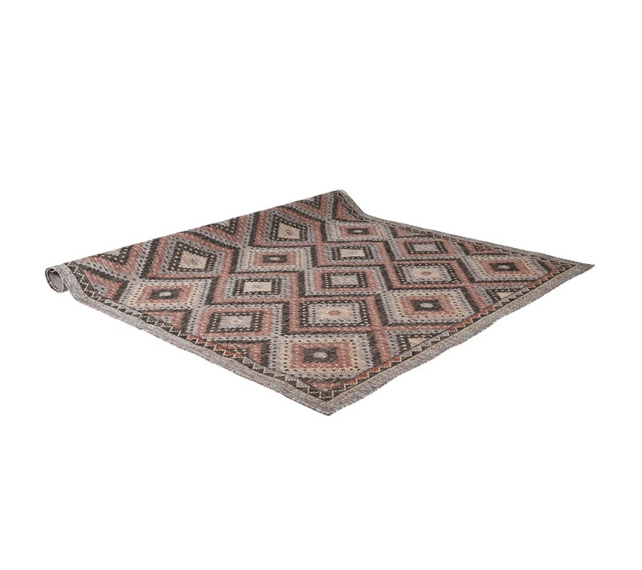 Koberec Nomad Brown prináša do interiéru jedinečný etno dizajn s výrazným kosoštvorcovým geometrickým vzorom v hnedých, sivých a tehlových odtieňoch. Jeho obdĺžnikový tvar a jemne prelínajúce sa farby vytvárajú dojem hĺbky, zatiaľ čo vzhľad pripomínajúci ručne tkané koberce dodáva priestoru autentickosť, teplo a štruktúru.