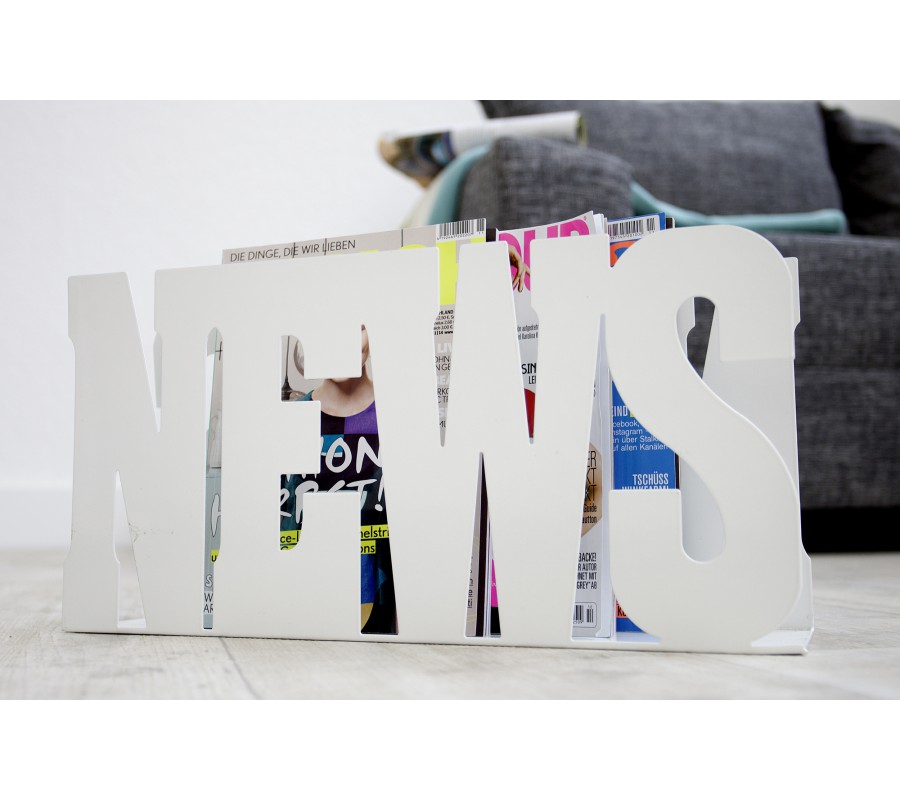 Moderný originálny stojan na časopisy News sa hodí do moderne zariadených interiérov kde si nájde určite svoje miesto. Stojan News je vyrobený z kvalitného kovu v bielej farbe. Rozmery: 40cm x 20cm x 10cm (ŠxVxH).