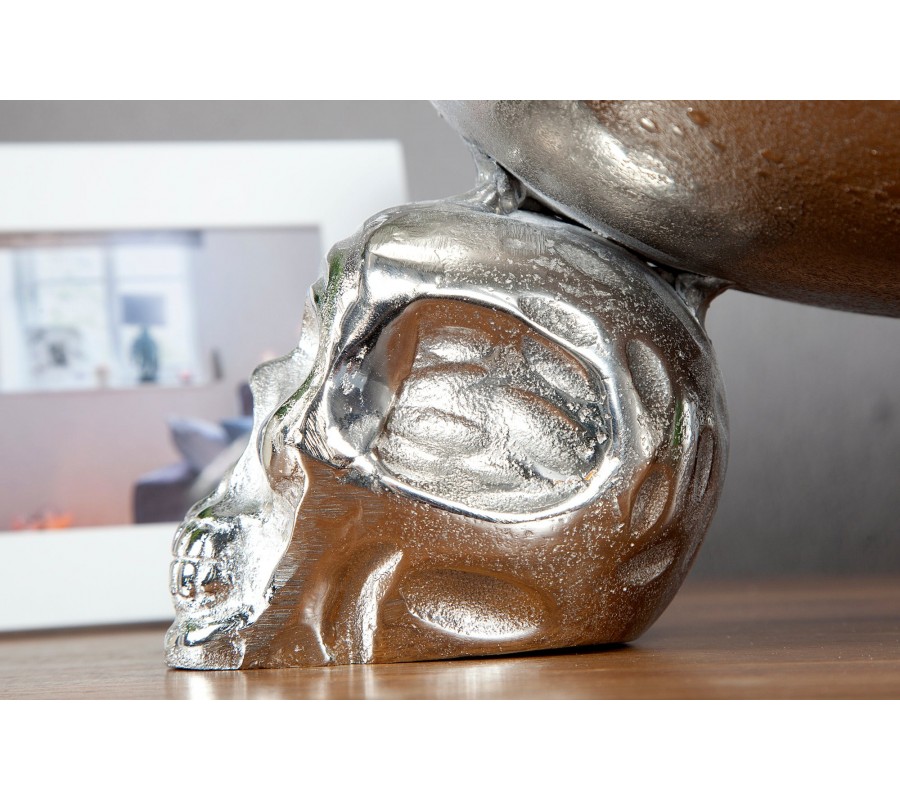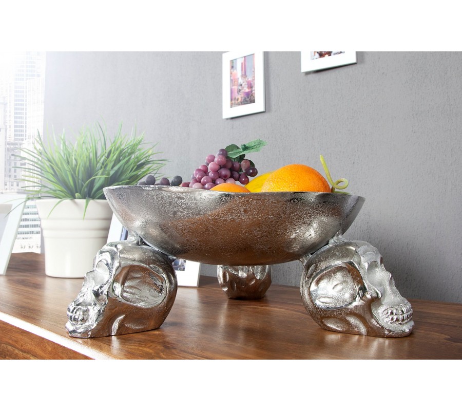 Extravagantná originálna dekoračná misa na ovocie Lebka 35cm strieborná