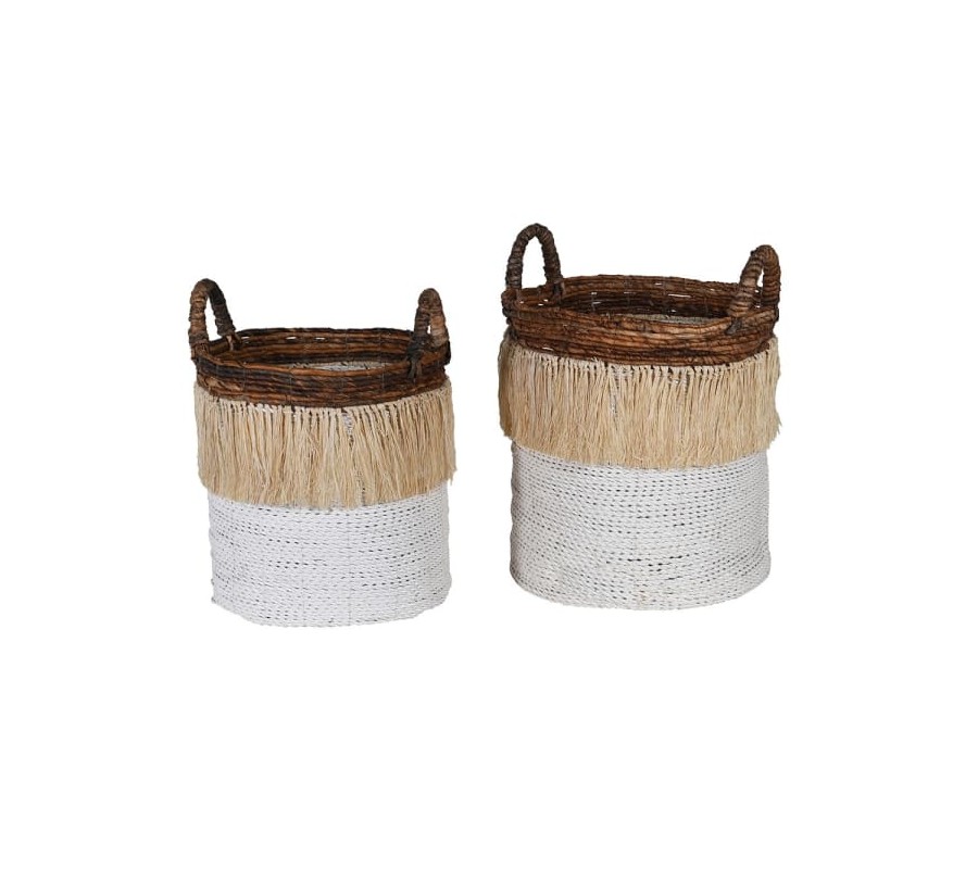 Vidiecky set dvoch ratanových košov Pelasi hnedej a bielej farby s prírodným zdobením 40cm