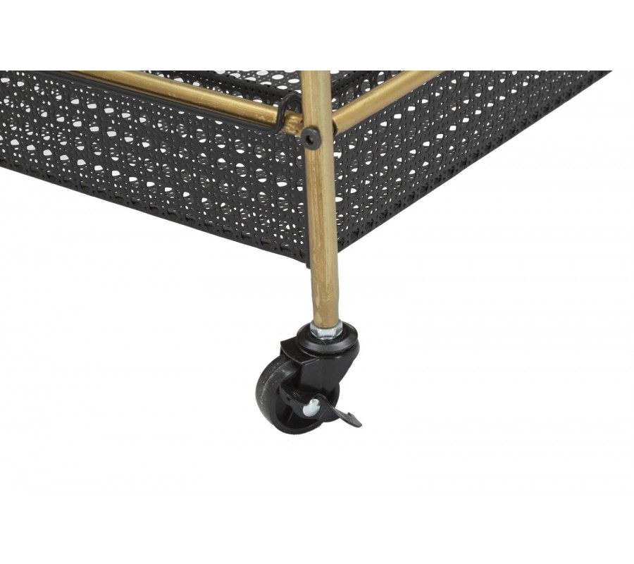 Art deco obdĺžnikový kovový zlato čierny servírovací vozík Zero na kolieskach s tromi úložnými boxmi 81 cm
