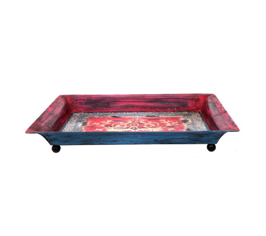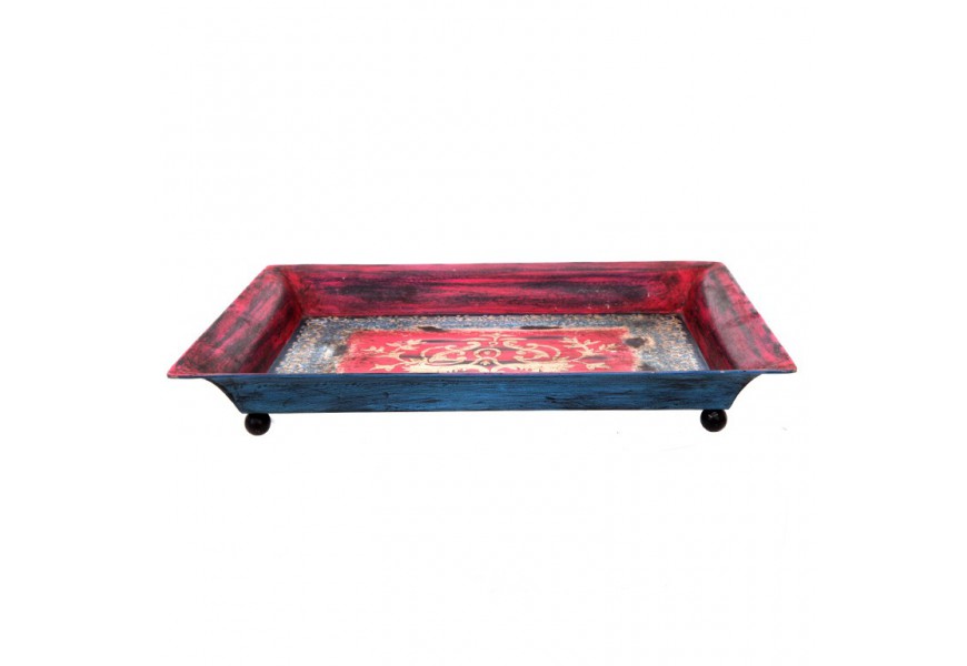 Kovová tácka s maľovanými motívmi v štýle Ďalekého východu.