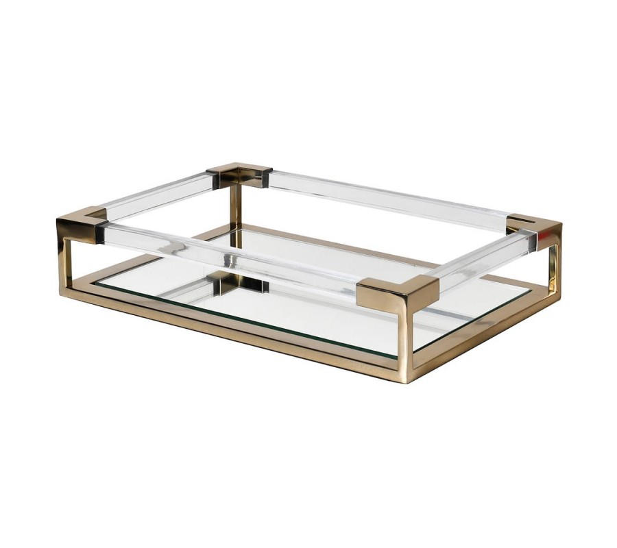 Luxusný podnos Lucy je štýlovým doplnkom, ktorý krásne vynikne v moderných či art-deco ladených interiéroch. Podnos je vyrobený zo skla a akrylu a jeho priehľadný dizajn so zlatými prvkami pôsobí skutočne luxusne a štýlovo! Originálne prevedenie poteší každého milovníka art-deco štýlu a elegantných doplnkov.