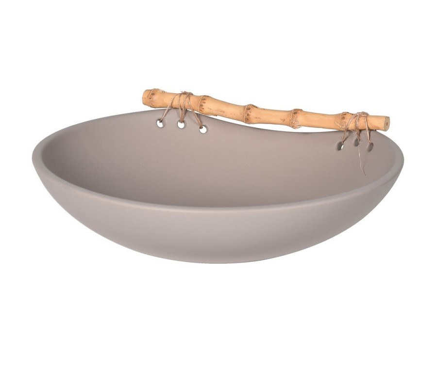 Dizajnová kameninová misa Brooks v sivej farbe s bambusom 30cm