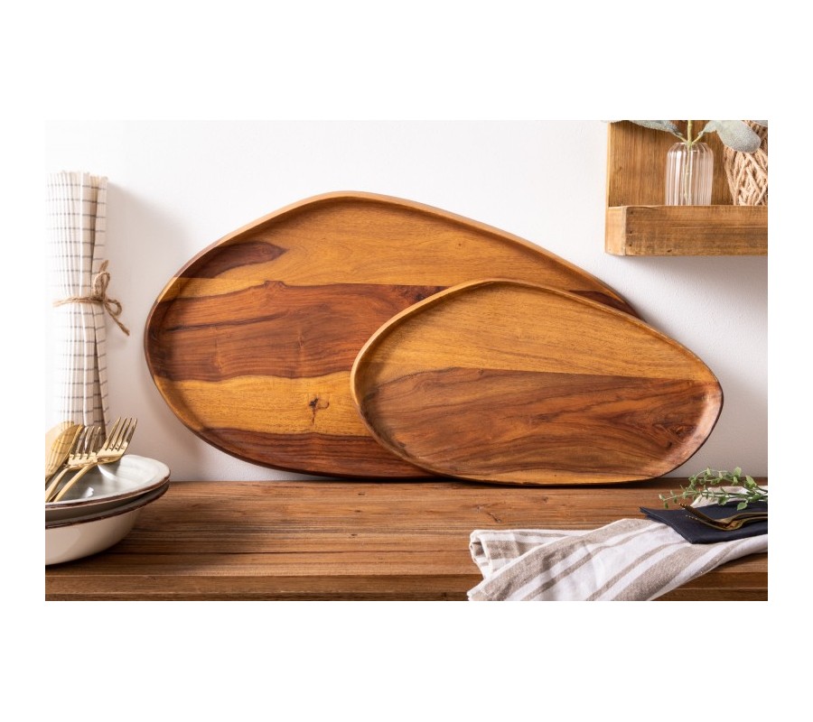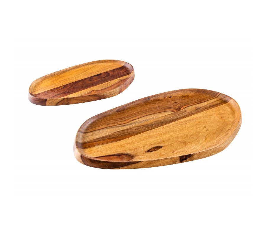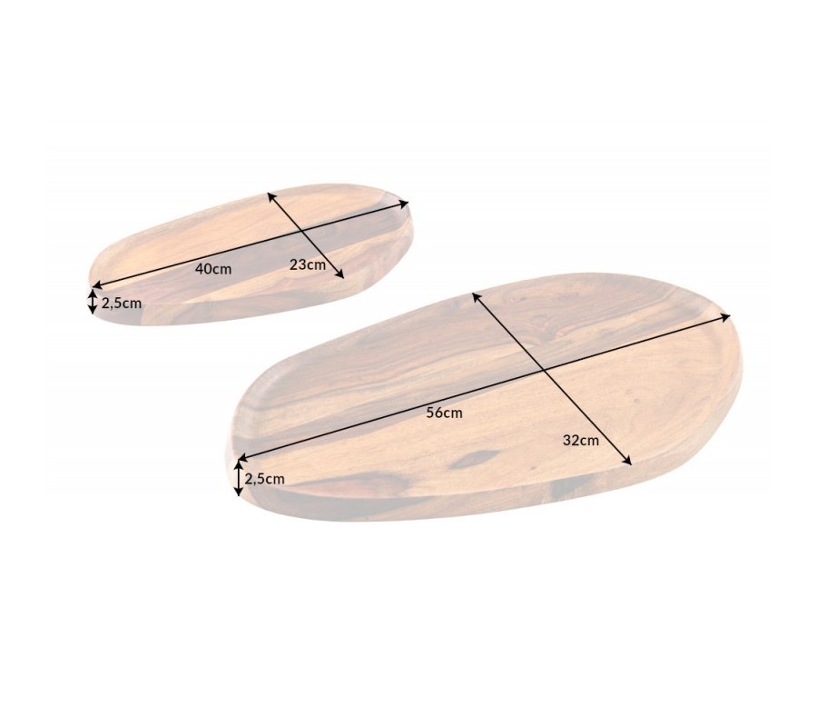 Dizajnový set dvoch podnosov Amanita z dreva sheesham nepravidelných oválnych tvarov hnedej farby