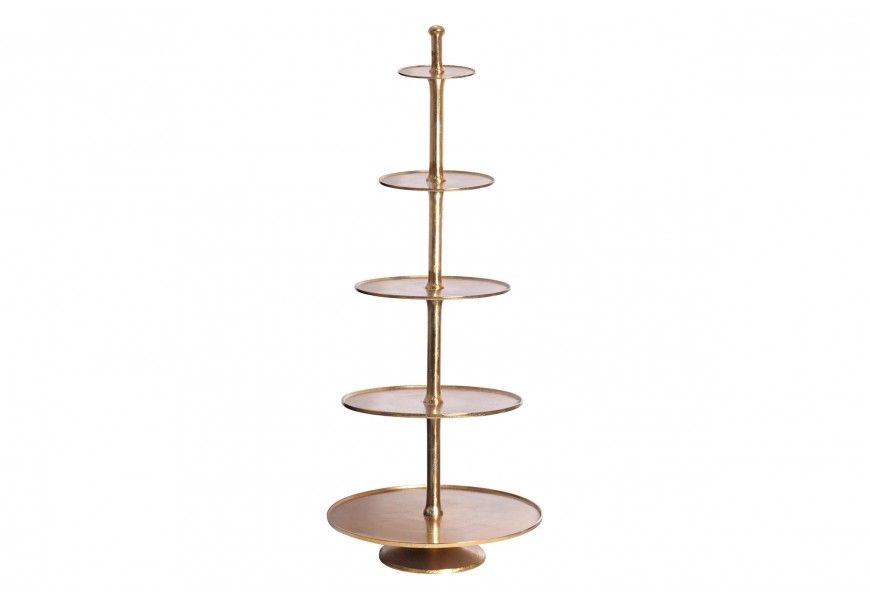 Luxusný okrúhly etažér Amelié s piatimi úrovňami v art deco štýle v zlatej farbe 149 cm