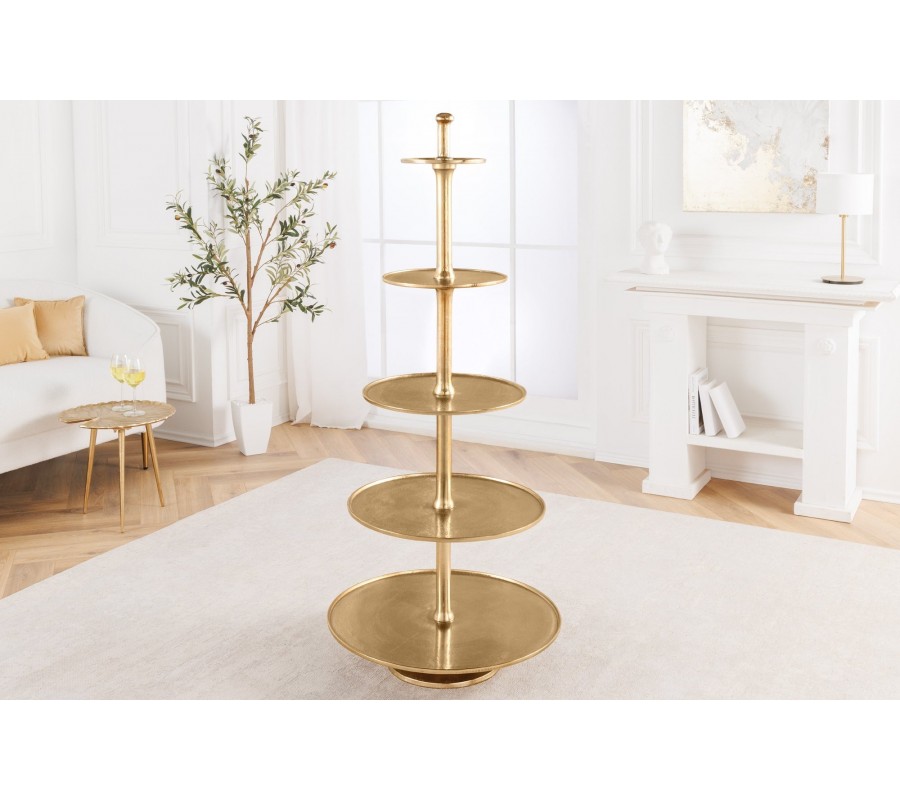 Luxusný okrúhly etažér Amelié s piatimi úrovňami v art deco štýle v zlatej farbe 149 cm