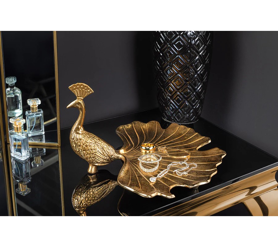 Glamour ozdobná kovová zlatá misa Peak v tvare páva 37 cm