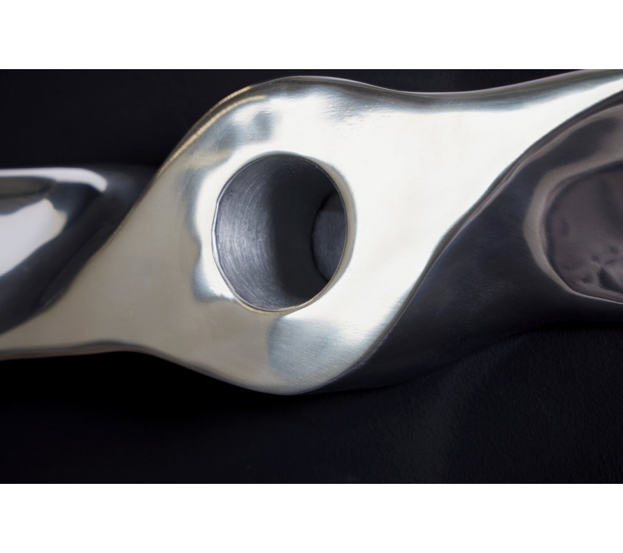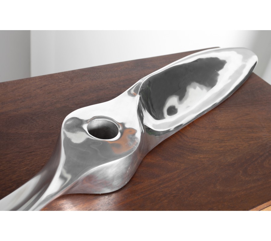 Dekorácia vrtuľa Propell vnáša do interiéru výrazný industriálny a moderný akcent. Je vyrobená z kvalitného kovu a má precízne leštený povrch v chrómovej striebornej farbe, ktorý vytvára zrkadlový lesk a pútavé svetelné odlesky.