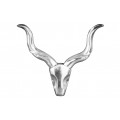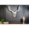 Dizajnová moderná kovová nástenná dekorácia Gazelle v striebornej farbe s motívom lebky s rohami 55 cm