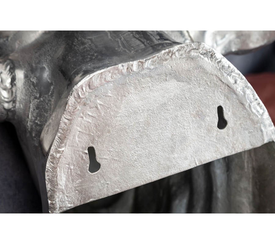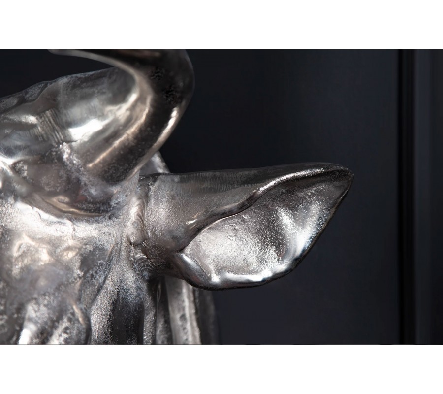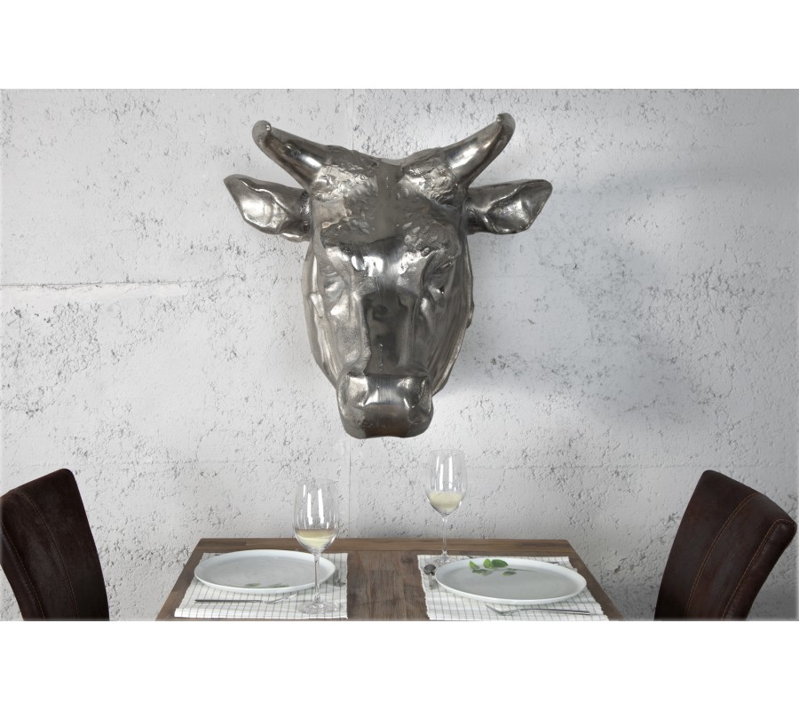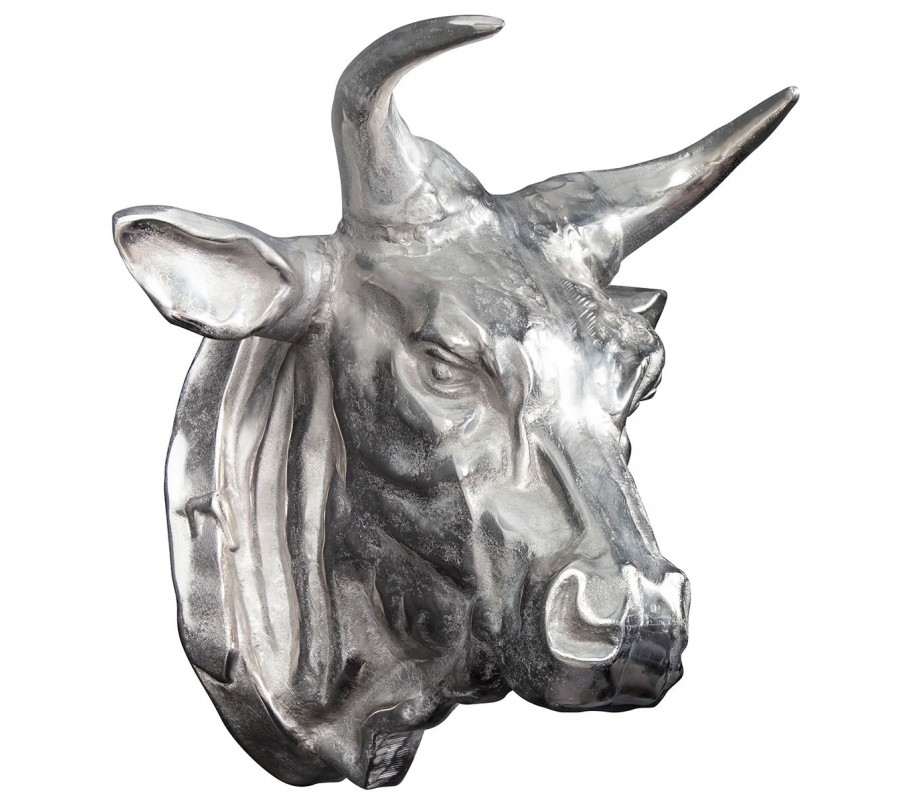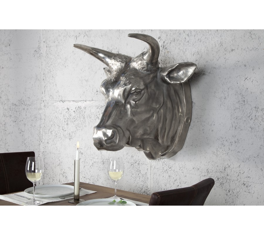 Jedinečný hliníkový odliatok hlavy býka je štýlovou dekoráciou do interiéru, a to nielen pre milovníkov zvierat. Býk bol už od starého Egypta symbolom sily, a tak nájde svoje miesto najmä v pánskych pracovniach čí obývacích izbách. Veľkosť: 65 cm x 55 cm x 55 cm (ŠxVxH) Farba: strieborná Materiál: hliník, stena zliatina dekorácie